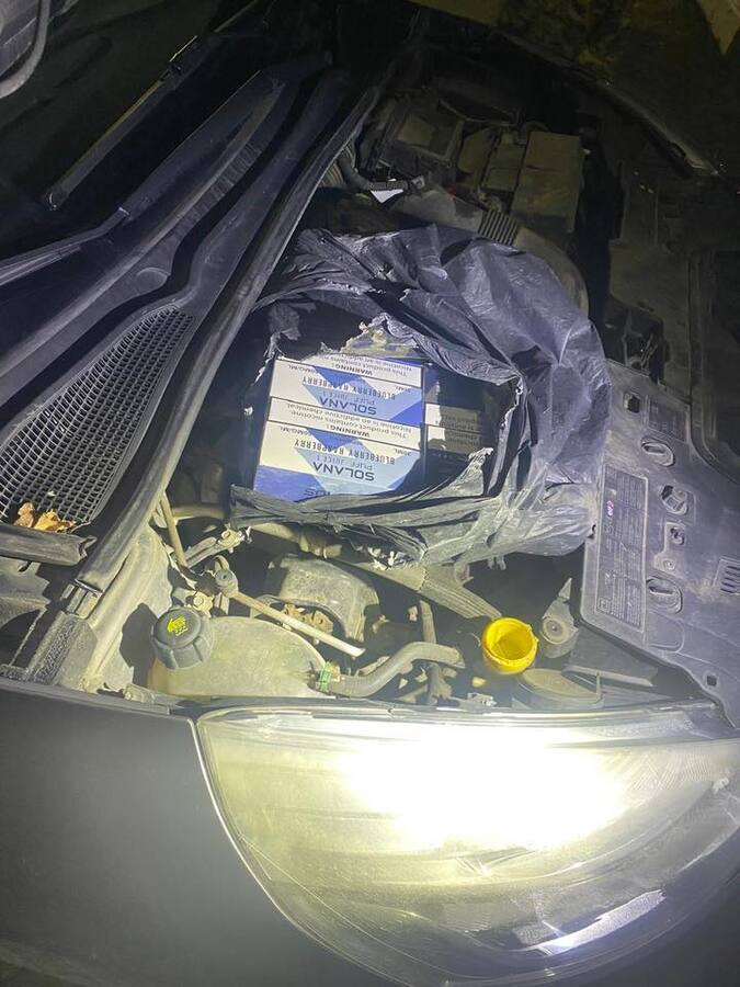 - в моторному відсіку, в чорному поліетиленовому пакеті ‒ рідини для електронних сигарет, у кількості 80 флаконів з написом «SOLANA»;