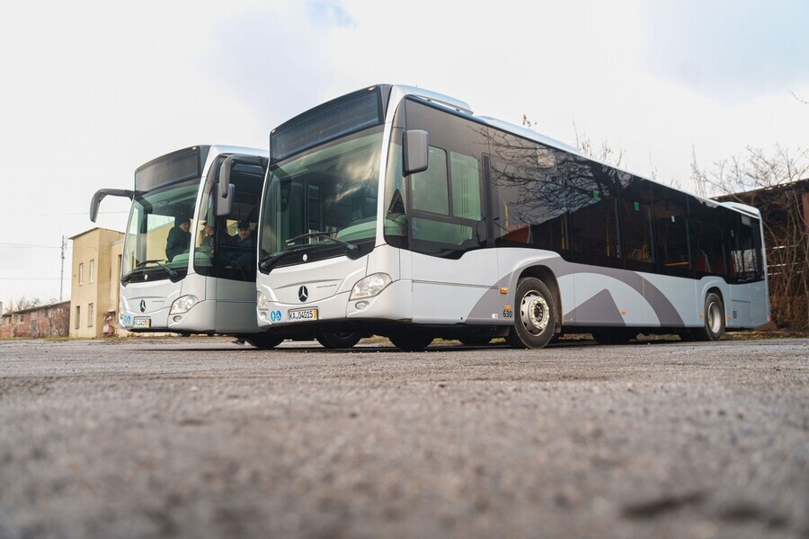 Автобусний парк також поповнився новими одиницями. Місто отримало дев’ять низькопідлогових 12-метрових автобусів. Сім вживаних газових автобусів Solaris Urbino III придбали через тендерну процедуру, ще два автобуси Mercedes-Benz Citaro Вінниця отримала від німецького міста Карлсруе. На момент публікації два автобуси Solaris уже вийшли на міські маршрути.
