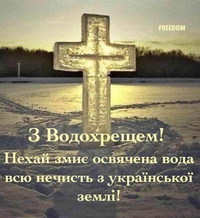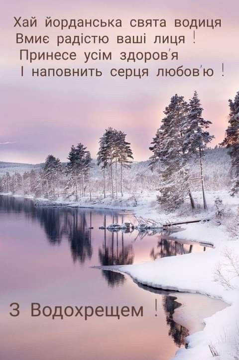 У світлий день Водохреща бажаємо вам миру, злагоди та внутрішньої гармонії. Нехай у вашій оселі панують тепло і взаєморозуміння, а віра допомагає долати всі життєві випробування. Хай цей день наповнить серце надією та світлом.