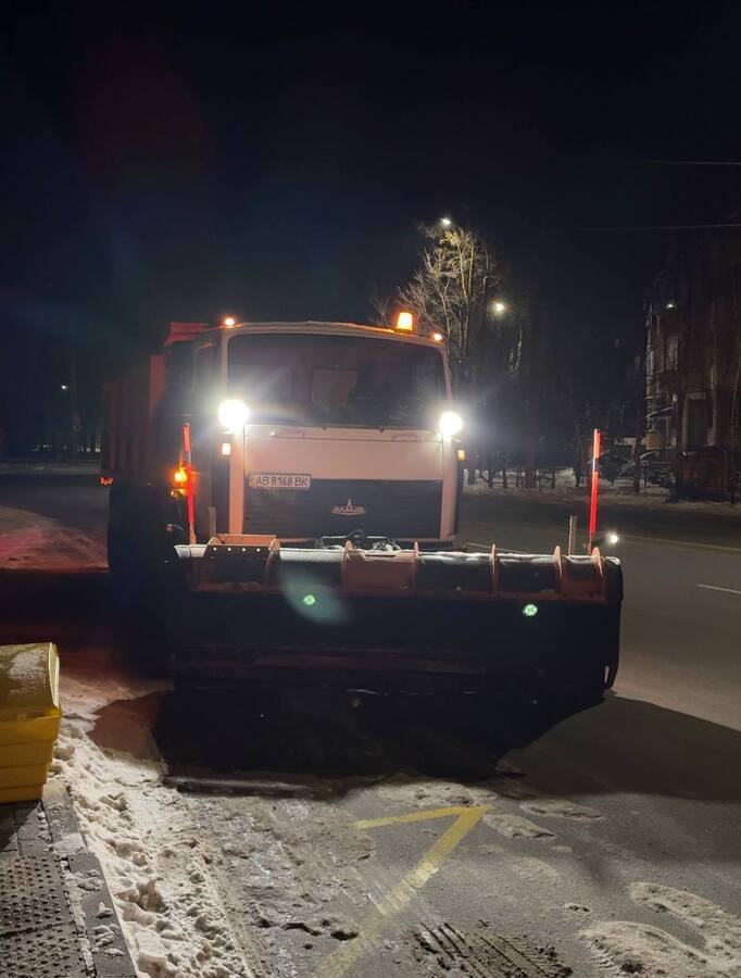 У Вінниці ввечері та вночі комунальні служби працюють у координації з патрульною поліцією. Поки снігоочисна техніка розчищає та посипає проїжджу частину, патрульні стежать за безпекою на дорогах, супроводжують спецтранспорт і оперативно реагують на порушення. Найбільше уваги приділяють зупинкам громадського транспорту, заїзним кишеням, перехрестям і підходам до тротуарів у всіх районах міста.