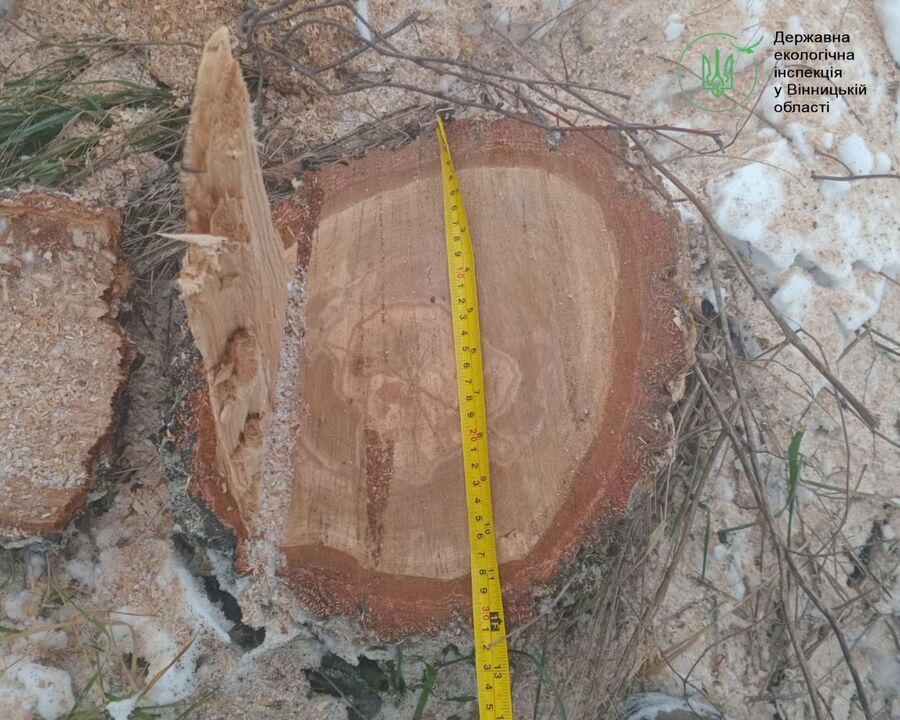 Наприкінці 2025 року інспектори Державної екологічної інспекції у Вінницькій області під час заходів з охорони та збереження природних ресурсів зафіксували факт незаконної порубки дерев.