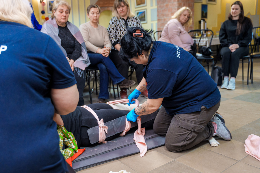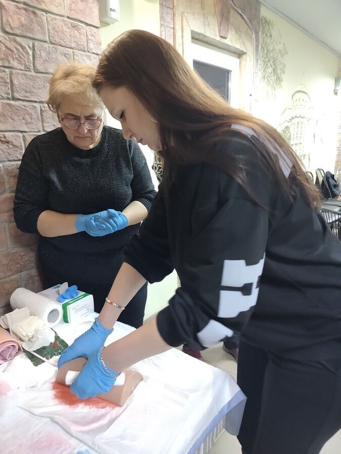 "При роботі з рідинами, зокрема з крововтратою, потрібно надягати додаткову пару рукавичок, а також захистити слизові, зокрема очі. Також, важливо, правильно оцінити стан потерпілих. Передусім допомога надається людям з критичними кровотечами та проблемами з прохідністю дихальних шляхів”, – зазначає тренерка.