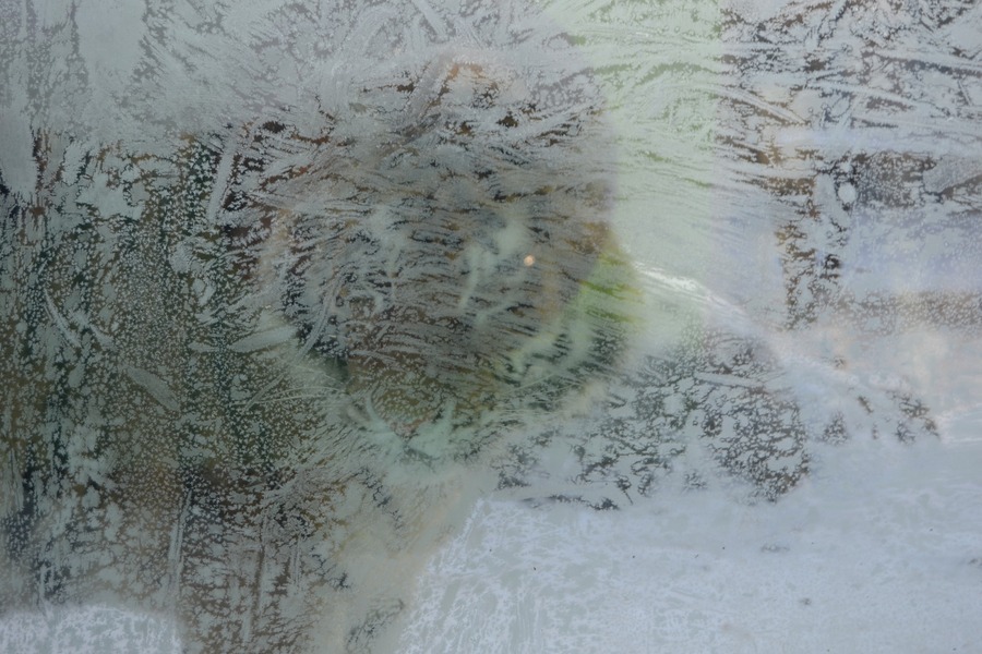 Не бояться холоду й тигри. Час від часу ці великі котячі спостерігають за відвідувачами крізь візерунки на склі, які залишає мороз.