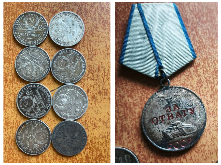 Зокрема, серед виявленого — сім срібних монет номіналом 50 копійок 1924 року карбування, одна срібна монета такого ж номіналу 1925 року, срібна скарбничка, орден Вітчизняної війни, орден Гвардії СРСР та медаль «За відвагу».