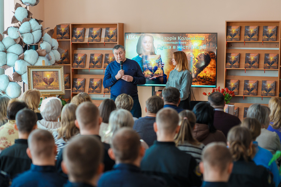 «У травні 2025 року відбулася презентація першої книги Вікторії Колмикової – “Янголи Маріуполя”, яка містила біографії, спогади, світлини, поетичні твори про 14 Героїв з Вінниччини, які загинули під час оборони Маріуполя. Тепер світ побачила друга праця письменниці – “Душа у місті Марії”. Цінно, що презентація відбувається саме на теренах бібліотечного простору. Тому що бібліотека сьогодні – це не просто книгозбірня, це платформа для спілкування, обміну думками та досвідом. Обидві книги – це не тільки особисті історії Героїв та матерів, це історія нашої України, нашої боротьби за свободу. Доземний уклін родинам полеглих Героїв, янголів, які захищали Україну і тепер оберігають нас з небес», – зазначив директор департаменту культури Вінницької міської ради Максим Філанчук.