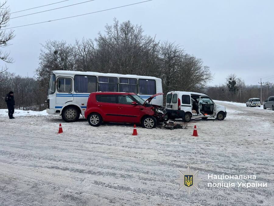 На Жмеринщині вранці сталася дорожньо-транспортна пригода за участі двох легкових автомобілів та автобуса. Аварія трапилася 6 лютого близько 08:50 неподалік села Северинівка.