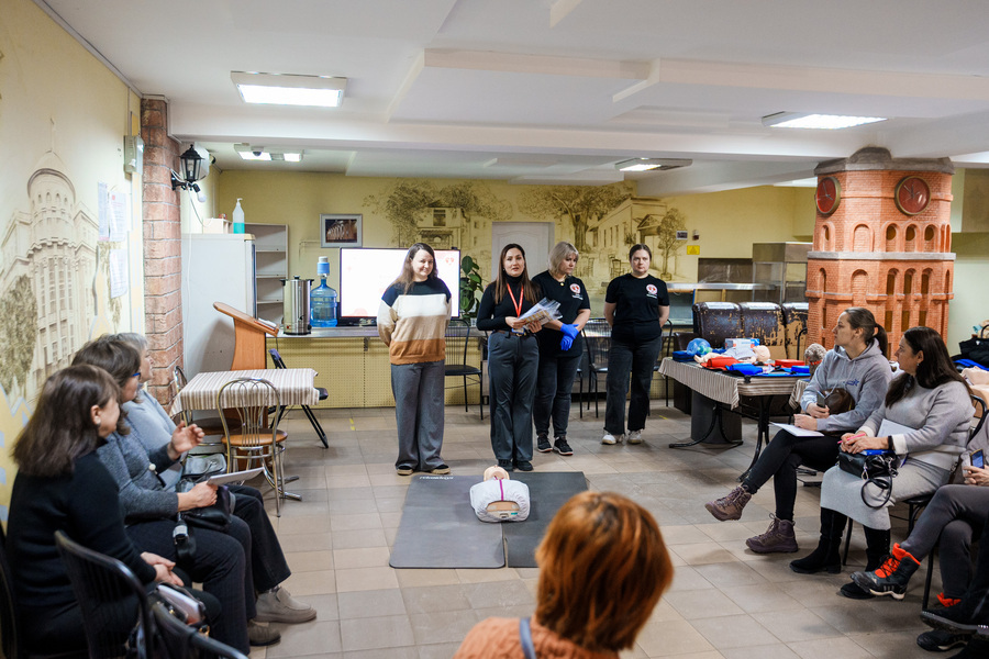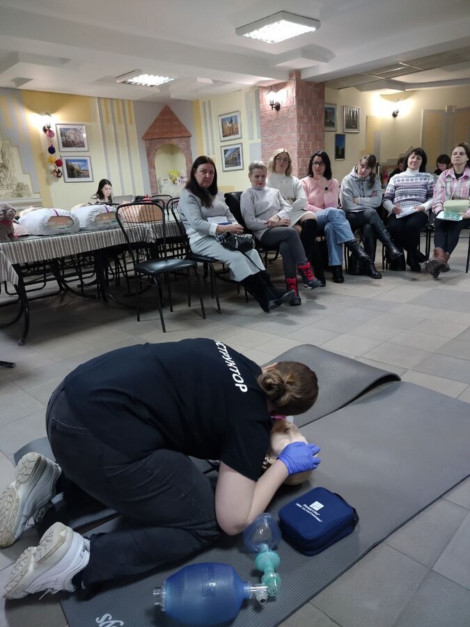 «В межах першого дня навчання, друга група голів правлінь ОСББ зосередила увагу на серцево-легеневій реанімації — тобто на тих випадках, коли людина втрачає свідомість і не дихає або ж має проблеми з диханням», — зазначає Мирослава Жиліна.