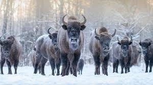 Зимовий ліс дихає тишею. Сніг приглушує кроки, а мороз тріщить між чорними стовбурами дерев. І раптом з-за засніжених гілок повільно виходить зубр — темна, масивна постать із парою, що здіймається з ніздрів. У його спокійних очах — сила, накопичена століттями.