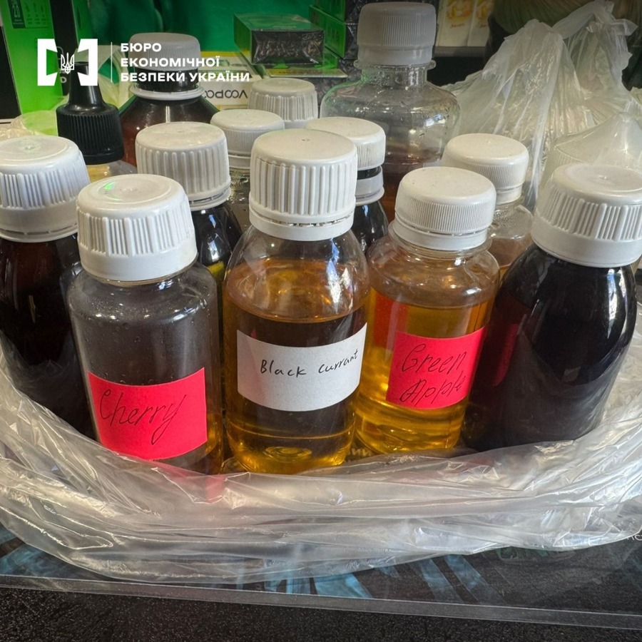 Під час проведення слідчих дій детективи вилучили з незаконного обігу значну кількість продукції. Зокрема, йдеться про близько 10 000 ємностей із ароматизаторами, нікотином та гліцерином.