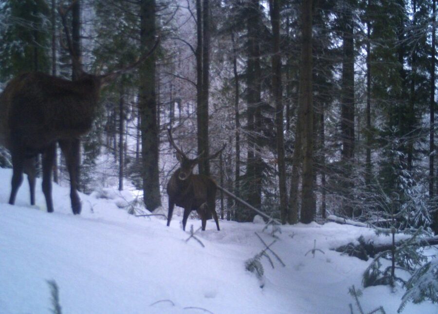 “Взимку в горах кожен звук вартує енергії, а кожен рух — життя. Дикі тварини не потребують зайвих слів чи гучних жестів. Їхня близькість — це спільне тепло в завірюху, слід у слід по глибокому снігу, охорона спокою один одного”, — зазначають у парку.