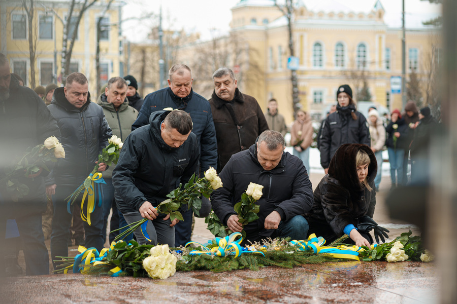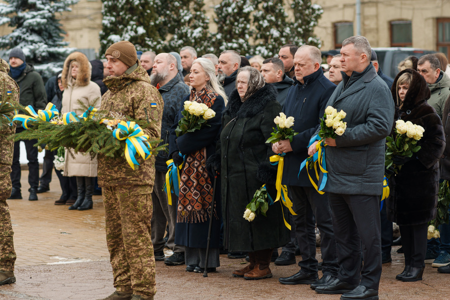 До покладання квітів долучилися представники влади міста та області, військові, правоохоронці, рідні загиблих героїв, небайдужі громадяни. Делеговане покладання відбулося й до пам’ятного знака Небесній Сотні і загиблим героям російсько-української війни.