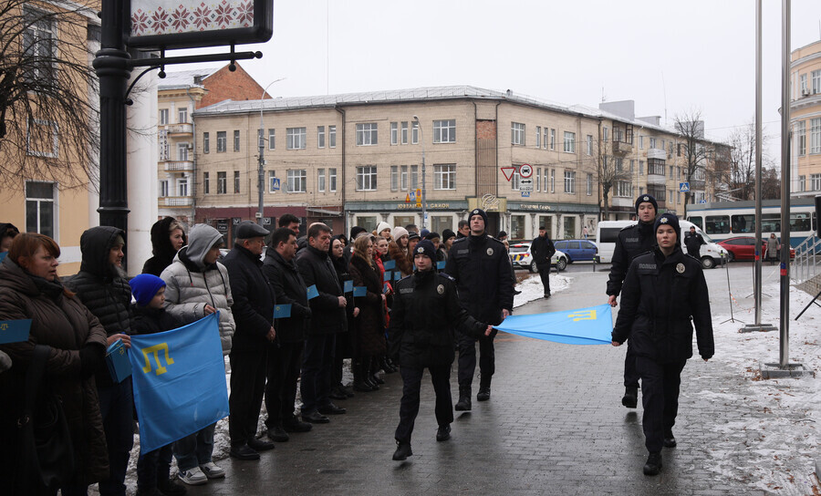 У четвер, 26 лютого, у Вінниці відбувся урочистий захід до Дня кримського спротиву російській окупації. Під стінами обласної ради підняли національний стяг кримськотатарського народу – блакитне полотно із золотою тамгою. Саме цього дня у 2014 році тисячі кримських татар та українців вийшли під будівлю парламенту Криму в Сімферополі, щоб заявити на весь світ: «Крим – це Україна».