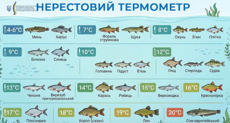 Тому обмеження на риболовлю запроваджують для того, щоб риба могла спокійно відкласти ікру та відновити популяції. Початок нересту залежить від температури води. Для різних видів риби вона різна.