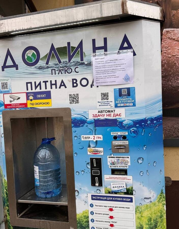 Вінницькі мережі автоматів із продажу питної води готуються до зміни вартості своїх послуг. Вже з 1 квітня ціна за один літр води зросте до 3 гривень. Відповідні оголошення власники мереж почали розміщувати безпосередньо на точках розливу по всьому місту, інформує My Vin.
