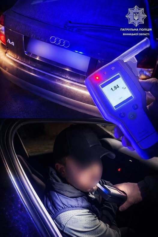 Водій погодився пройти тест за допомогою приладу Драгер. Результат виявився вражаючим — 1,84 проміле алкоголю в організмі. Показник перевищив допустиму норму у дев’ять разів.