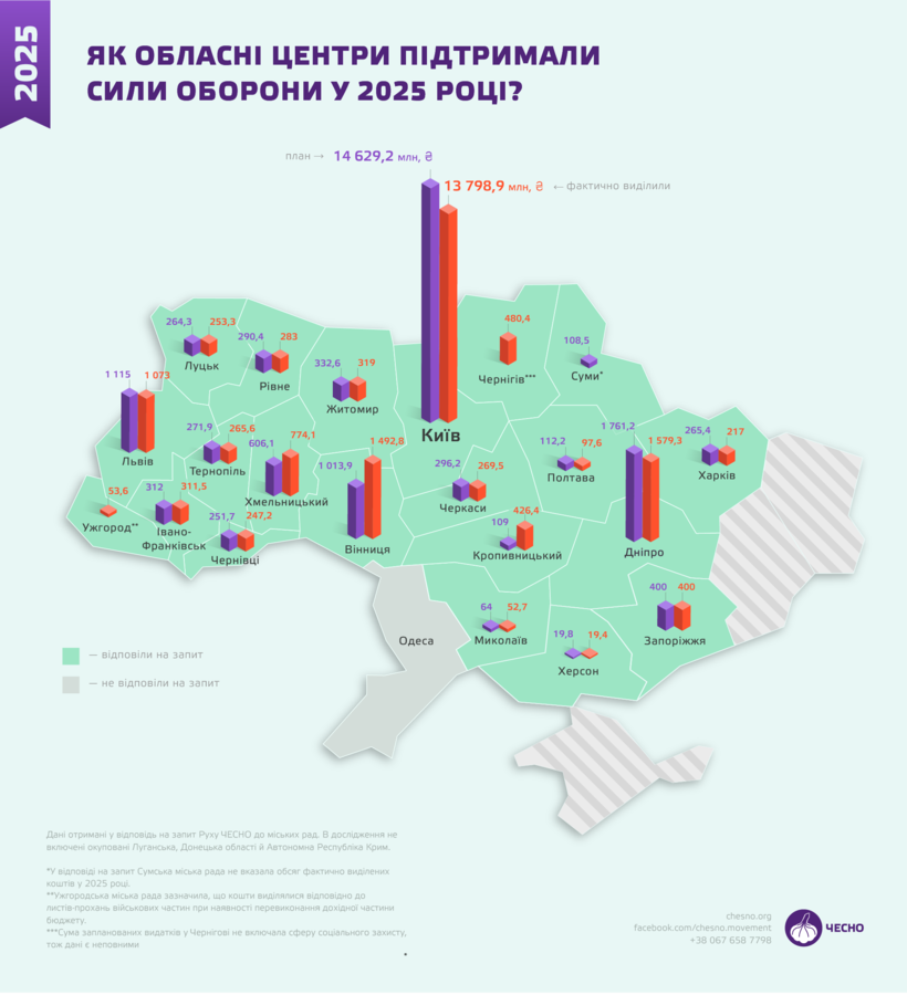 Друге місце за часткою витрат посів Чернігів — 14,5% бюджету, третє — Хмельницький із 774 млн грн на оборону.