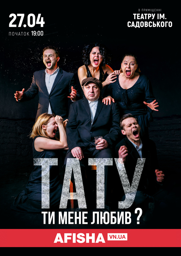 Вінничани і гості міста, не пропустіть довгожданий показ вистави «Тату, ти мене любив?» 27 квітня о 19.00 на сцені театру ім. Садовського!