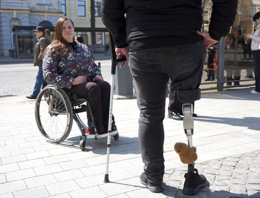 Вінничанин Сергій Колумбет на протезі вже понад 19 місяців. Поранення отримав під час штурму позицій у Донецькій області, після цього пройшов етап протезування та реабілітацію. За його словами, при такій ампутації користуватися протезом рекомендується від трьох до шести годин, втім Сергій зізнається, що насправді користується протезом більше часу, тому для нього є важливою наявність понижень та інших елементів доступності.